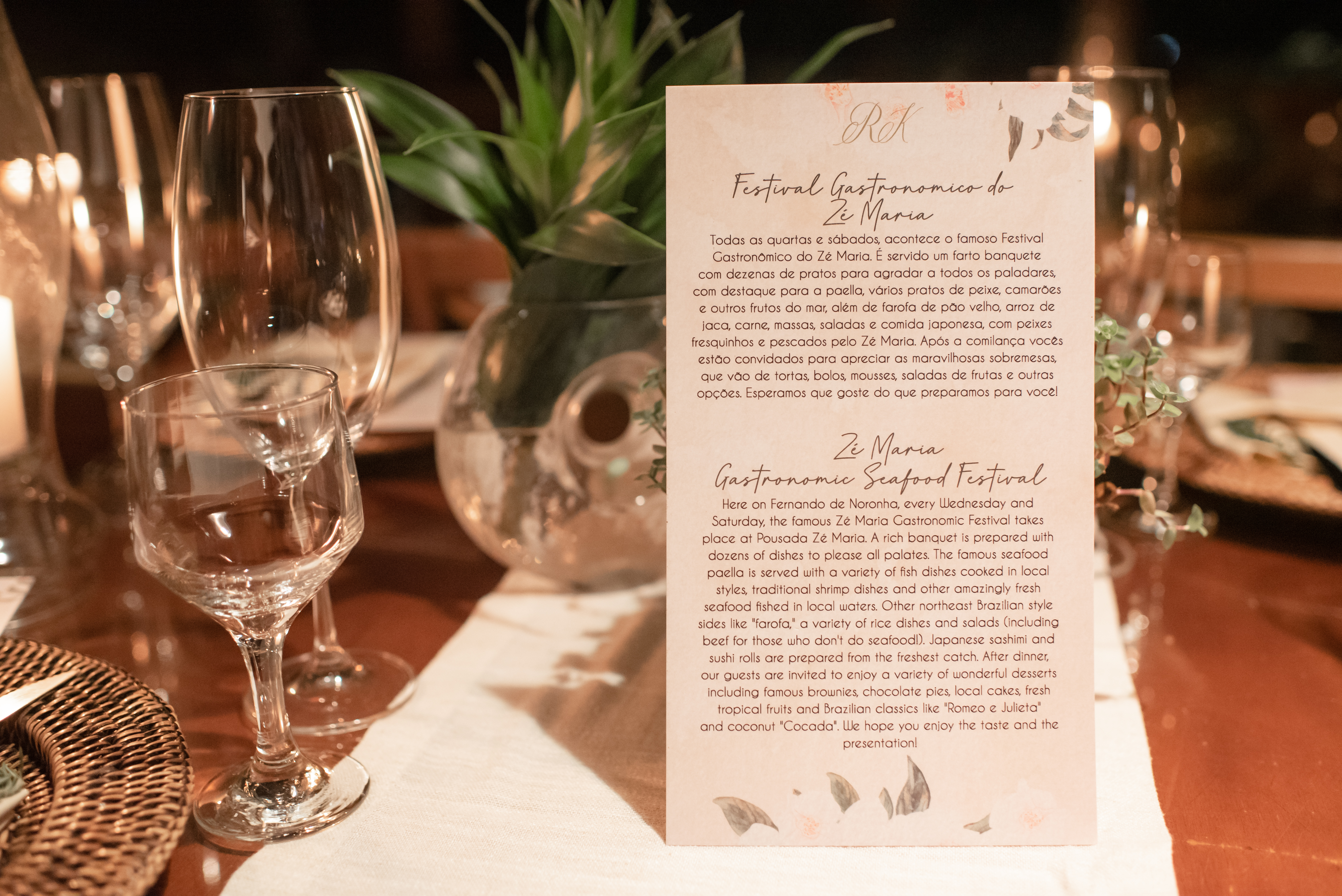 As fotos ficaram cinematográficas, modéstia à parte. E não poderia ser diferente! A começar pelo jeito em que se olhavam. O mundo parava a todo segundo. Os convidados, como eram superíntimos, vibravam na mesma frequência. Sintonia absurda e pra lá de legítima. Afinal, essa paixão foi uma daquelas avassaladoras sabe? Que chegam de forma despretensiosa e dá vontade de passar o resto da vida grudado, dividindo aprendizados e descobertas desse espaço-tempo. “Vamo se casar? Vamo! Em Noronha, no Brasil”.